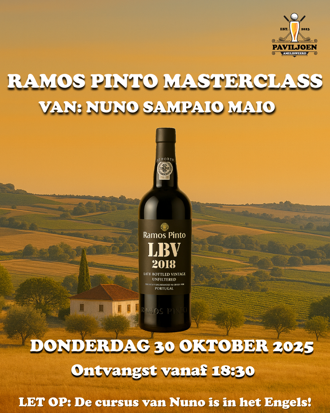 Nuno Sampaio Maia uit Portugal komt namens het huis van Ramos Pinto een masterclass geven over port, exclusief bij ons op Amelisweerd!